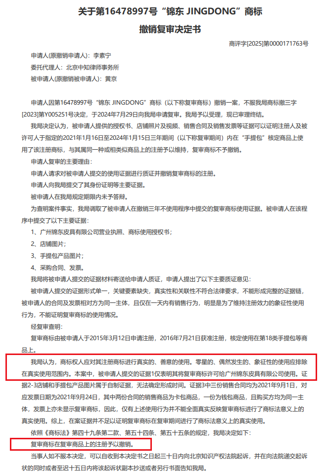 上述案例中,复审商标涉嫌象征性使用,最终在复审商品上的注册予以撤销。