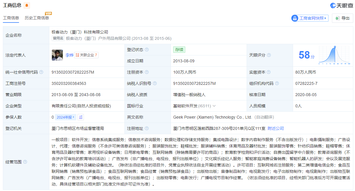 这家厦门公司是什么来头?天眼查显示,公司成立于2013年,主营软件开发、信息系统集成等业务,参保人数22人。从公开信息看,和国外开源社区没有任何交集。更可能是敏锐的国内企业注意到了这个新兴项目的商业价值,提前进行了商标布局。
